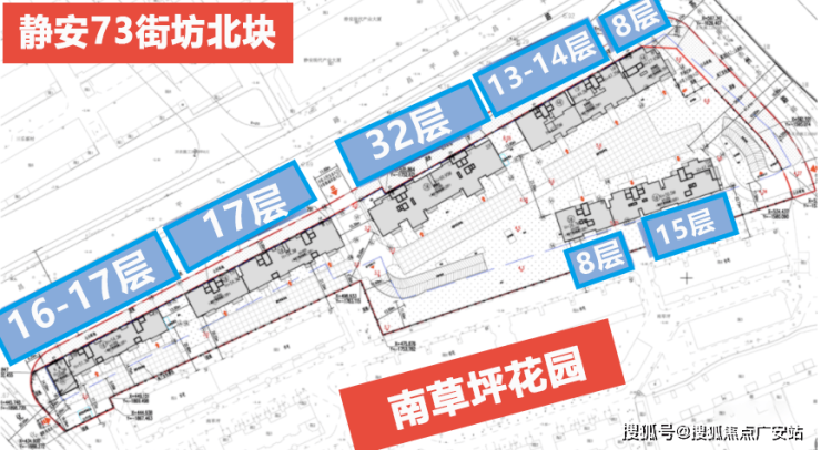 根据设计方案显示,北地块拟建5栋高层住宅,目前项目已结构封顶。