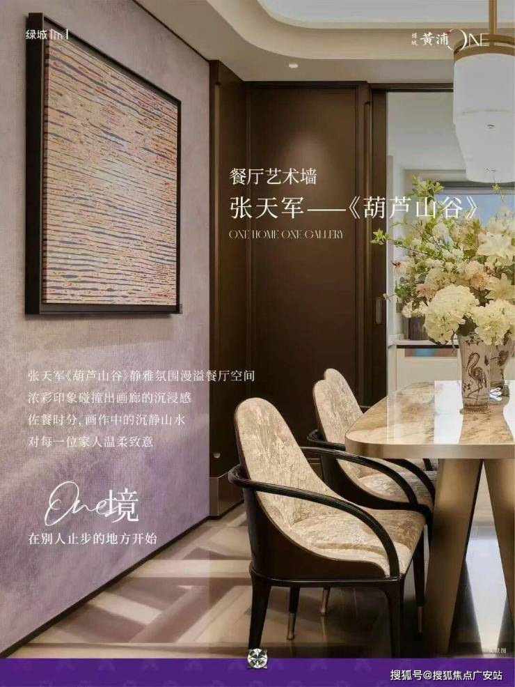 走进室内,艺术感更显细腻:餐厅一侧墙面点缀着张天军《葫芦山谷》系列独家共创画作;