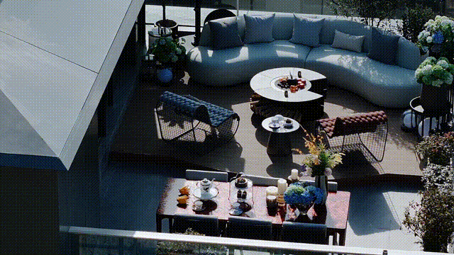 又或者在平常一天,男女主人在厨房做饭,抬眼便看到父母在露台陪伴孩子,其乐融融……场景十分丰富。