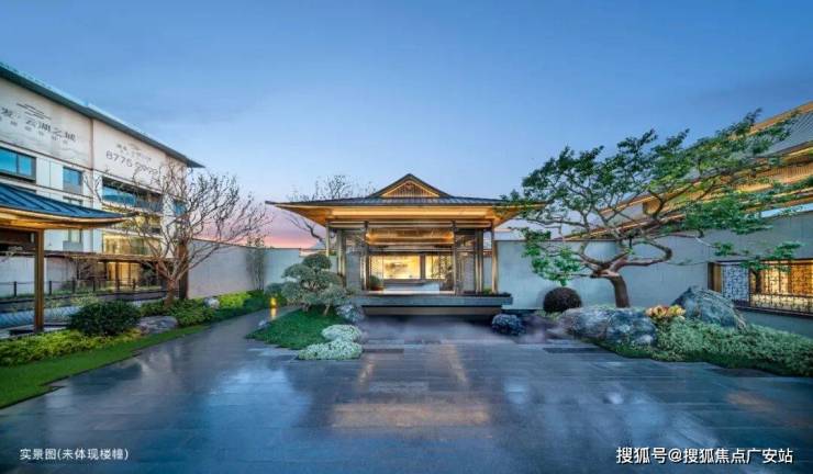 建筑风格:建发标志性宋韵新中式,飞檐坡顶、铝板+石材+玻璃幕墙,公建化质感,辨识度极高