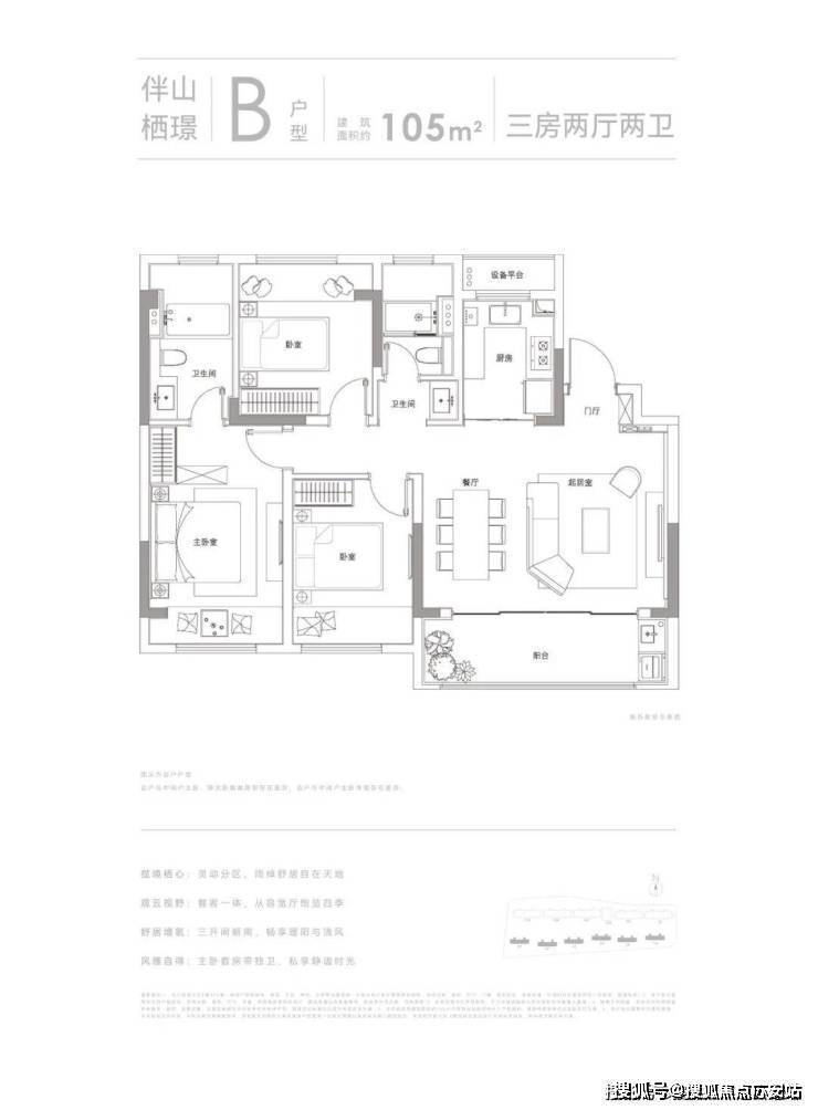 户型面积:约105㎡3房2卫、约148㎡4房2卫山岚璟庭售楼处电话:400-902-3966