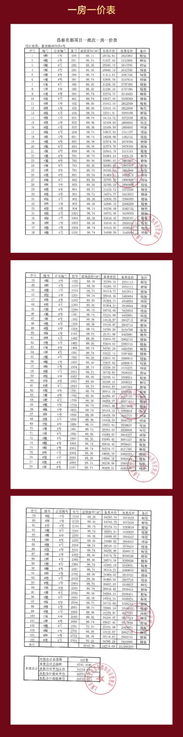 上期一房一价如下: