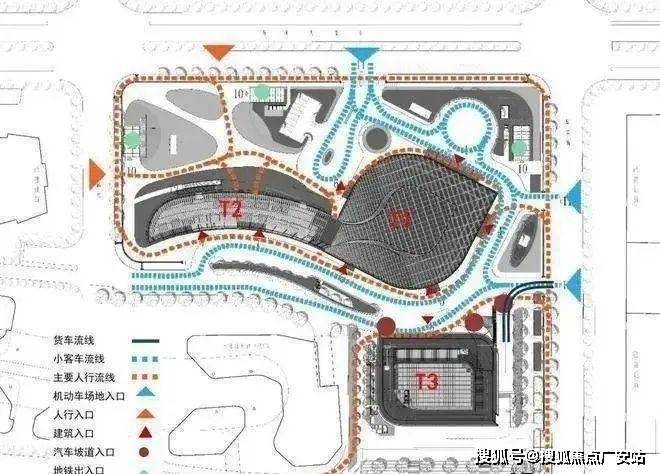 车行主要出入口结合内部市政道路,集中在基地东西两侧,车库出入口相对集中布置在T3塔楼周围,减少了对主要城市面的影响。