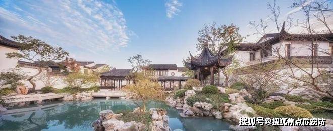 与全国在售中式作品相比,上海桃花源中轴五进制中轴园林,完整性、丰富度堪称全国之最.金瑞园坐北面南,由正南入园,中轴园林不仅设对景峰石、蜿蜒水街、太湖山石、亭台轩廊等景观节点,还以宽广山石庭园和辽阔水景,呈献潆回环抱之势,意趣无穷.另外,山林连绵、亭廊曲折,江南的温婉、隽永,尽藏其中.