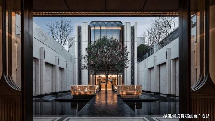 不仅是金钱上的奢侈,更是时间广度的奢侈。比如,整个下沉式庭院材料选用土耳其进口老虎玉,由匠人耗时60天手工打磨定制,可见海上·清和玺对业主归家仪式感设计的用心与苛求。海派光厅之外的归家迎宾树木更是由设计师辗转多个城市才寻到的、树龄超60年的福木“紫薇”。