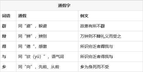 鱼,我所欲也;熊掌,亦我所欲也。二者不可得兼,舍鱼而取熊掌者也。生,亦我所欲也;义,亦我所欲也。二者不可得兼,舍生而取义者也。生亦我所欲,所欲有甚于生者,故不为苟得①也;死亦我所恶②,所恶有甚于死者,故患③有所不辟④也。如使⑤人之⑥所欲莫甚于生,则凡可以得生者何不用也⑦?使人之所恶莫甚于死者,则凡可以辟患者何不为也?由是则生而有不用也,由是则可以辟患而有不为也。是故所欲有甚于生者,所恶有甚于死者。非独贤者有是⑧心也,人皆有之,贤者能勿丧耳。