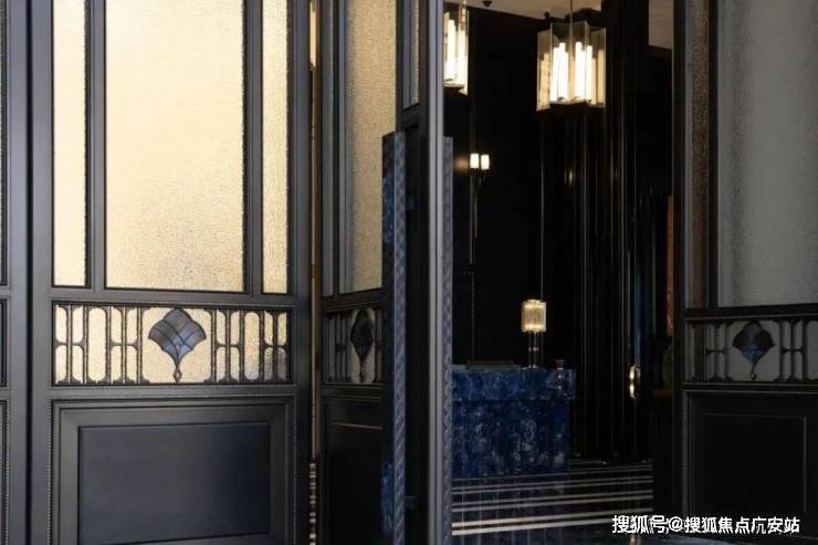 细节之处,光是一个接待台,就采用了产自玻利维亚约4500米海拔的高原矿脉——玻利维亚蓝石材,是世界上储存量最少的石材之一,非常珍贵;而大堂的柱子,也是巴西乌金奢石;