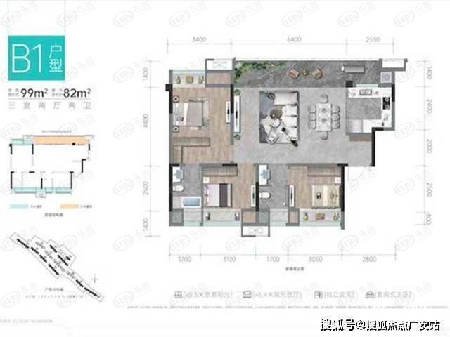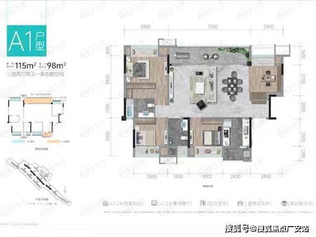 2、项目户型面积99~115㎡,涵盖3居室