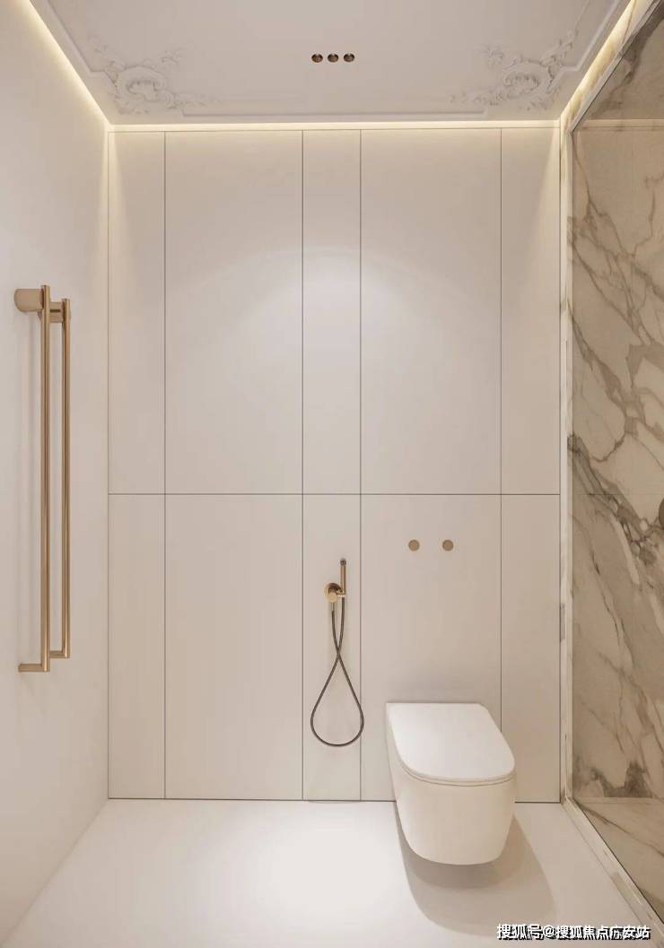 大面积的岩板铺设,带来了清爽而明朗的空间视野,将简与雅的独特气质更淋漓地展现,洗漱柜采用吊柜形式,无把手的立面,简致化的切割,流露出干练、简奢的美感。
