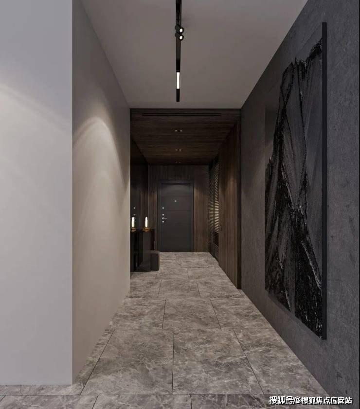 简洁大气的门厅空间,以高级灰作为主色搭配,大面积镜子、柚木护墙的铺设,减少了长过道的沉闷无趣,优雅的石膏线勾勒出古典层次,叙说出奢美的生活状态。