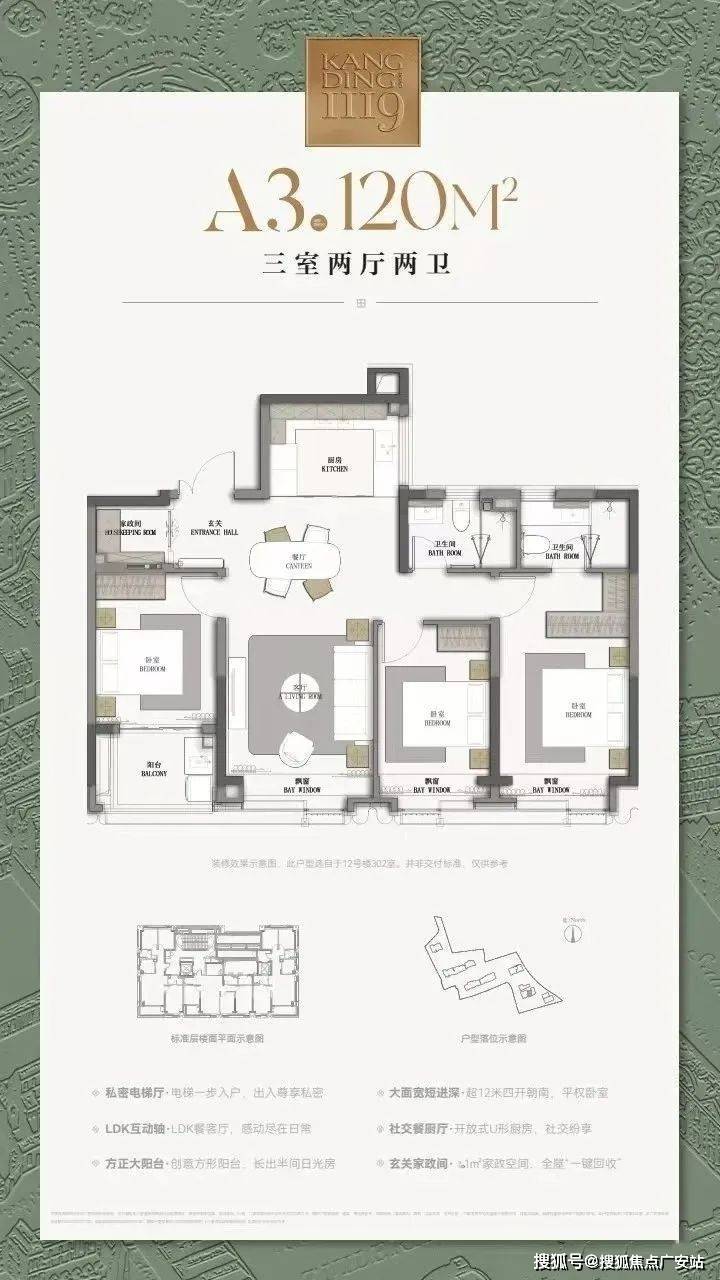 康定壹拾玖本次将推出建面约120㎡与193㎡两个户型,同时在现场实体楼栋打造了2个120㎡和1个193㎡样板间。