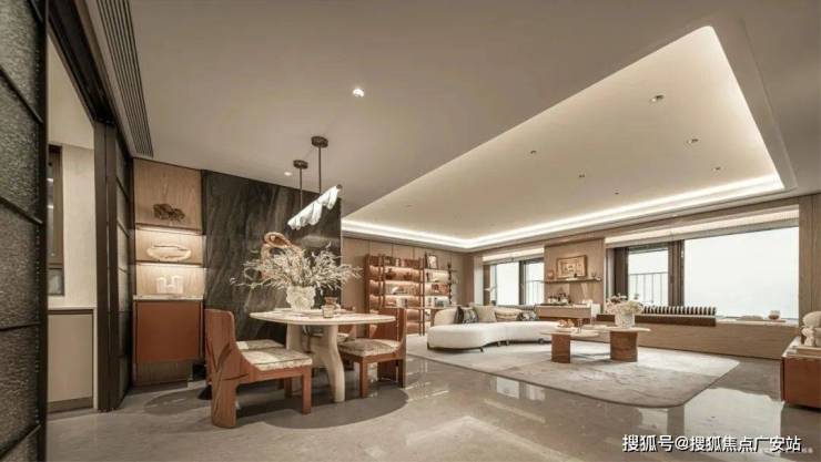 目前样板间做的是开放式书房,这让整个客厅空间大大增加。