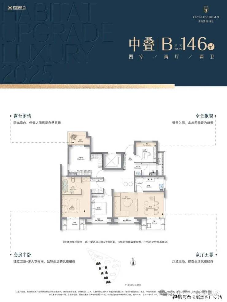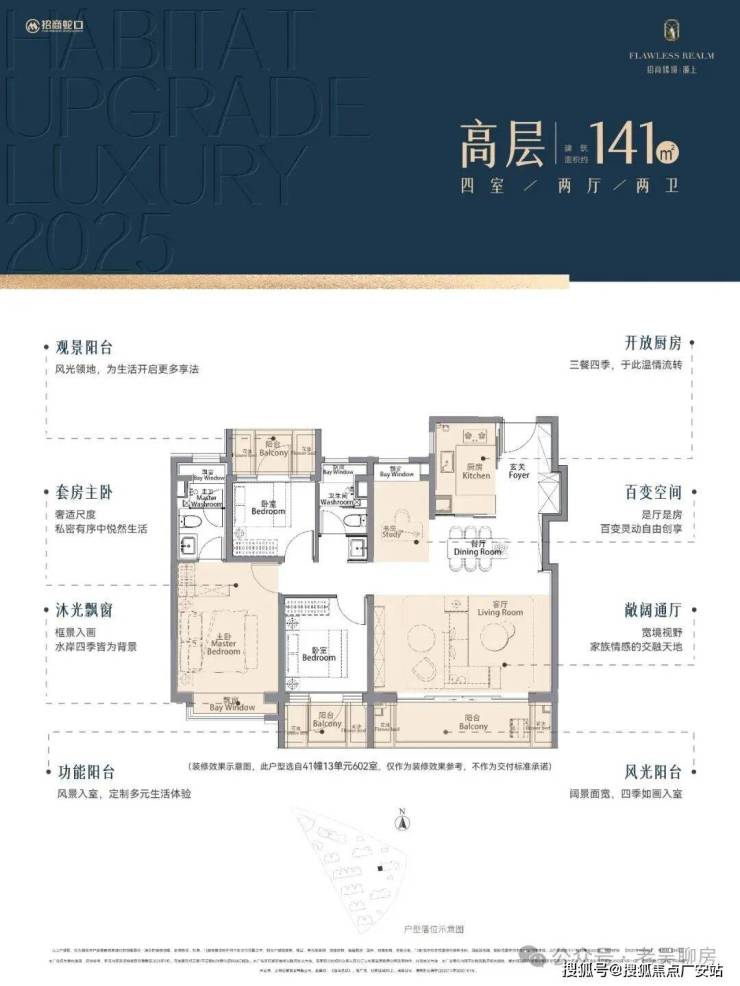 其中建面约141㎡户型优势突出!直面社区景观中轴,且整个西侧中高区看滨水+百万方城市公园景观无遮挡!景观视野满分!(公园为项目红线外设施,最终以政府审定以及实际建成为准,开发商不作承诺。)