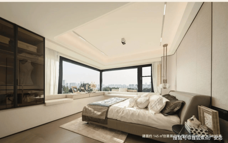 建面约145㎡户型以270°转角飘寄搭配超高窗墙比解锁超广角视野,将无限景致“拉”至眼前。城市的璀璨天际、静逸的河景、灵动的山水庭园,点亮窗前,让生活的每一刻都浸润在自然与开阔之中。