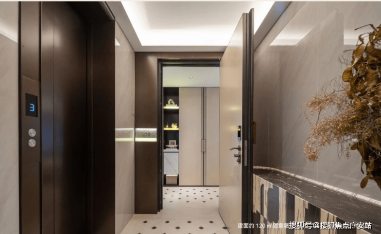从入户开始就拉满仪式感,类梯入户设计,搭配专属电梯厅,进门即享私密过渡空间,避免了传统户型“电梯厅共用”的尴尬。