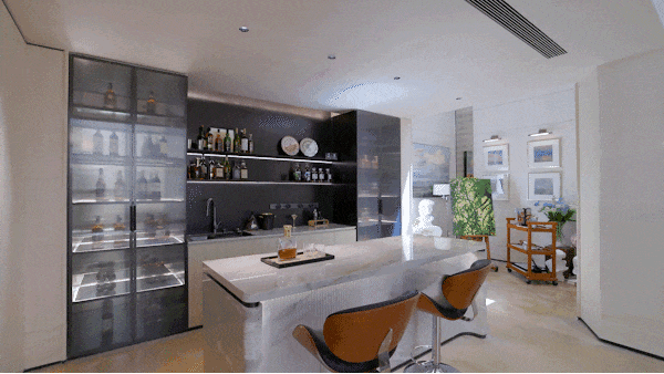 延伸出的"早C晚A"魔法空间,藏着都市人的生活仪式感:清晨,胶囊咖啡机吐出第一缕醇香,骨瓷杯沿的奶沫画出心形拉花;入夜,威士忌酒柜的柔光亮起,水晶杯折射出琥珀色的微醺时刻。