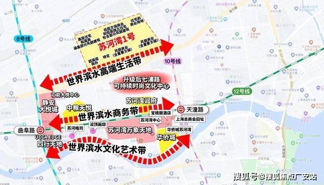 项目在营造绿意盎然生活场景的同时还营造更多志趣空间,触发更多停留和遇见的可能性,让社交在自然而然中发生。 比如,花间茶舍凉亭,业主纳凉交谈的同时还能欣赏360°景观。 又比如规划了童梦秘境、星光会客厅、能量加油站等休闲空间,小业主也能和同龄人共同成长。 除了硬性的公区,项目在软性服务上也做到极致。提供超越普通住宅的高端豪宅缦合物业服务。 业主将享受到: 社区冻龄服务:43项免费维修/入户冻龄检测服务; 铂金管家服务:24h铂金管家服务/酒店礼宾式安保服务/快递入户送达/空置房管理服务; 健康管理服务:每户3人康体会所免费使用服务/业主健康档案/线上诊疗等医疗管家服务/AED紧急救护服务; 非凡体验服务:中西方节日活动8次/大爱无疆的精英社区; 项目更充分考虑当代高净值业主需求,定制增值服务,包括每年1次纪念日策划服务;每年10天宠物托管寄养服务;儿童校车点接送服务;每年1次户内大理石结晶、木地板保养、空气治理、家庭收纳师上门、每季度入户深度清洁服务等;更有名医推荐,车辆代检等等。 回归地段,苏河湾1号的业主,未来享受的是高能级的配套,重量级的咖位,是上海价值的第一梯队。 项目距离苏州河直线仅约600米,饭后散步这个距离正好,一路上有不仅有大悦城、万象天地等商业,更点缀着没顶画廊、suhe haus苏河皓司、苏富比空间等艺术机构,整个街区充满浓郁人文艺术氛围。 同时直线距离3公里内,涵盖陆家嘴、人民广场、静安寺、南京西路、南京东路、外滩、新天地等城市CBD。 别人一个月才能享受一次的国际前沿生活,是苏河湾1号业主每天下楼后的日常。 静安内环内丨苏河湾板块 「苏河湾1号」 将推出约136㎡~537㎡房源