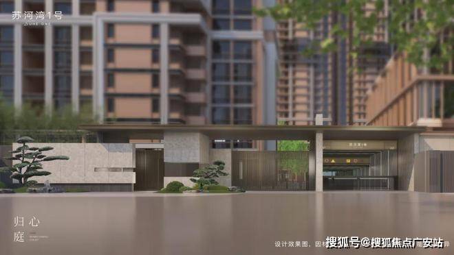 月光庭叠水潺潺,乔木掩映,层次感突出,营造出则繁华、入则静谧的度假式生活。