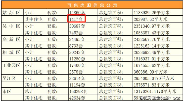 新房库存方面,据我们统计显示,截至目前,苏州新房库存一直维持在4万套以上,而姑苏区的新房库存却不到1500套,占比微乎其微,仅占3.3%。