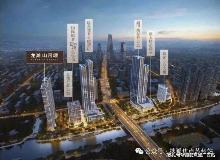 集5A超甲级写字楼、苏州首个康莱德酒店、天际顶奢大平层、COE总裁行政公寓、滨水商业街,多种业态于一身,承载苏州塔尖的生活向往。