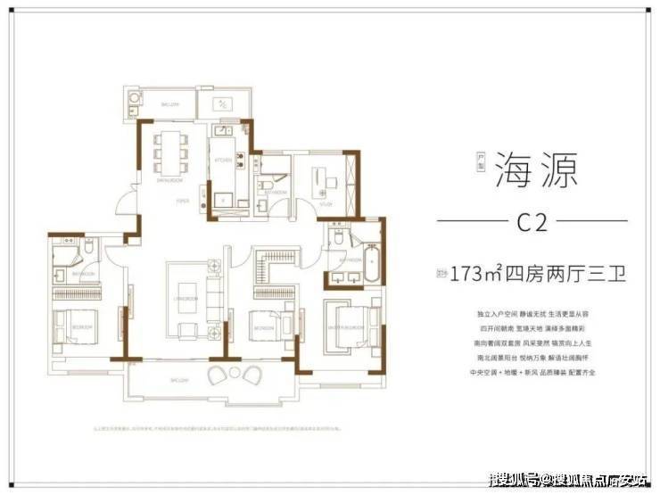 内在精装非常硬核!标配了大金中央空调、兰舍新风系统、林内地暖三大件...厨电卫浴方面, 采用方太、弗兰卡、高仪、索菲亚等一线品牌。