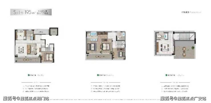 上叠:以195㎡的五房四卫,除了二层规划了朝北露台外,三层的空中阁楼,从多功能空间推门而出,竟然是一个“270°环幕式”生活露台,面积有70㎡左右。它可以是你抽离纷杂尘世的秘密花园,也可以是朋友聚会的快乐之地。▲建面约195㎡的上叠户型图