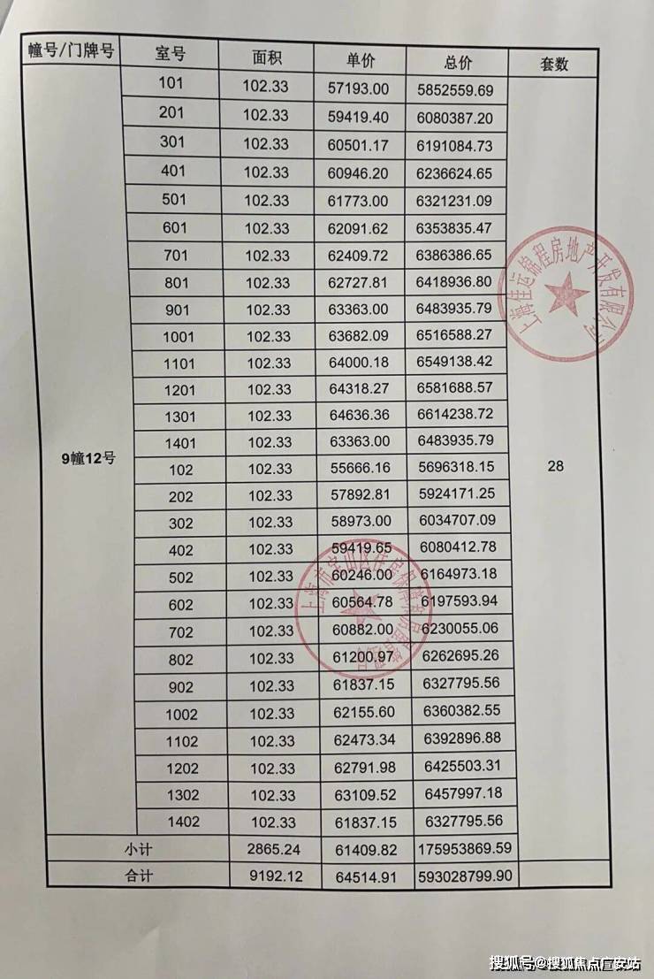 一房一价表发布:
