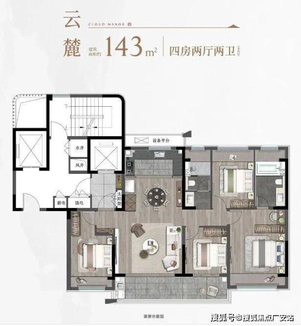 小高层(17F):建面约118㎡(三居)、143㎡(四居)