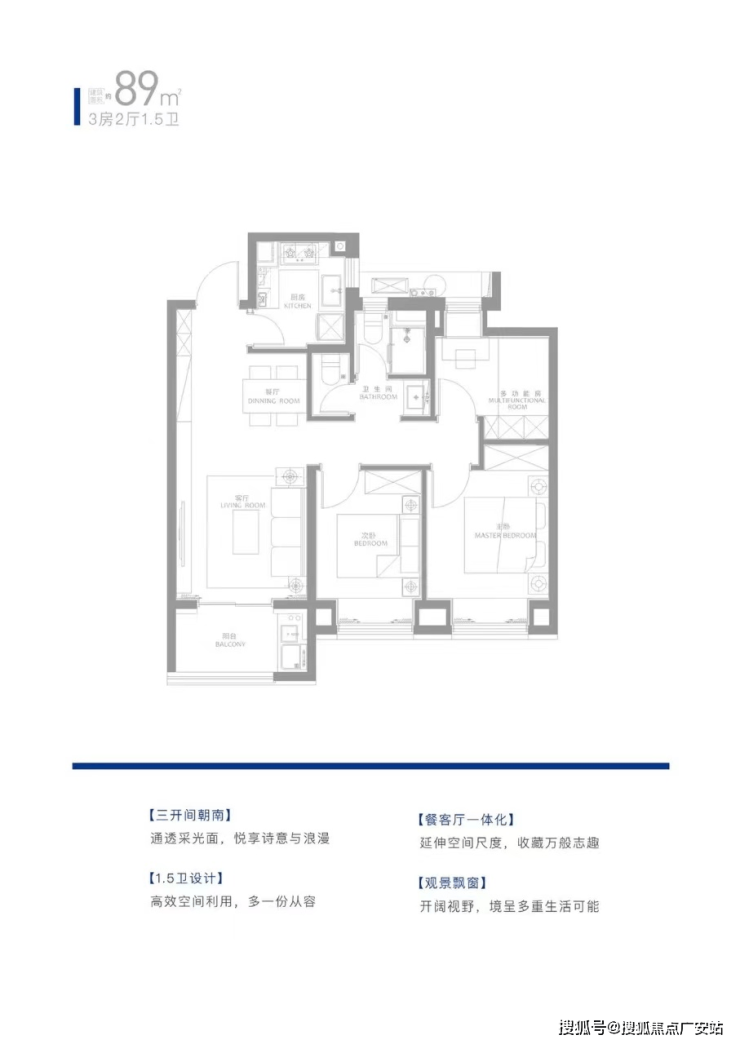 3开间朝南+5飘窗设计,空间利用到极致;
