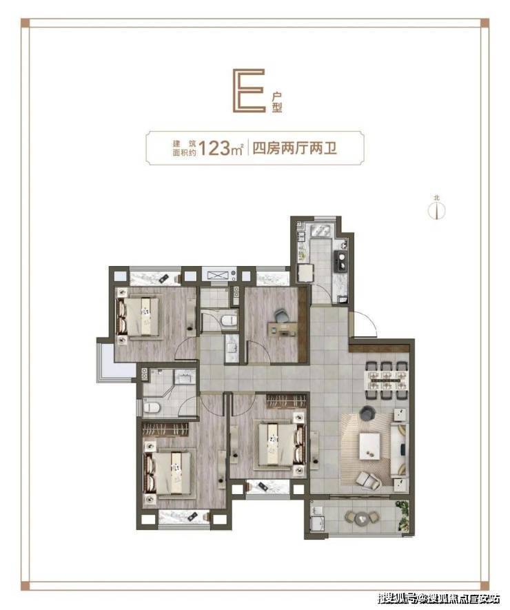 正三房:北卧室往往会被用作书房,面积略小是主要因素。这款产品,北卧室达到约8㎡,完全可以作为房间使用。不足100㎡,同样可以让三代同堂住的舒舒服服。