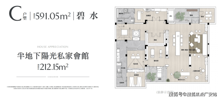 约212㎡的全功能半地下会馆,容纳下会客厅、健身房、桑拿房、恒温酒窖、艺术品收藏室、私家影院、K歌房、保姆房等等,各种流行或者小众的兴趣嗜好,都能在此安放。