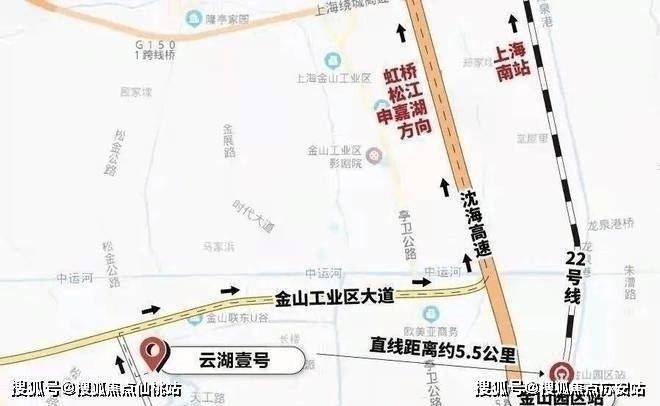 交通方面,除了上文提到的南枫线外,项目离轨交22号线金山园区站直线距离约5.5km,公交卡直接上车,可以去往上海南站,再坐三站地铁即到徐家汇。注:从上海南站,坐轨交半小时左右的片区房价,金山算最洼地,所以在南站或徐汇CBD附近的白领,有不少到金山购房的。