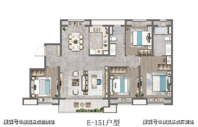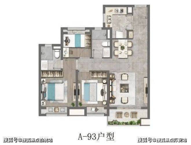 建面约104㎡的3房户型,四开间朝南+主卧套房设计+全卧室带飘窗+南北通透+超大的宽面阳台,做出了拥有120㎡以上户型的尺度感和舒适度。如果预算合适,这个户型绝对推荐。