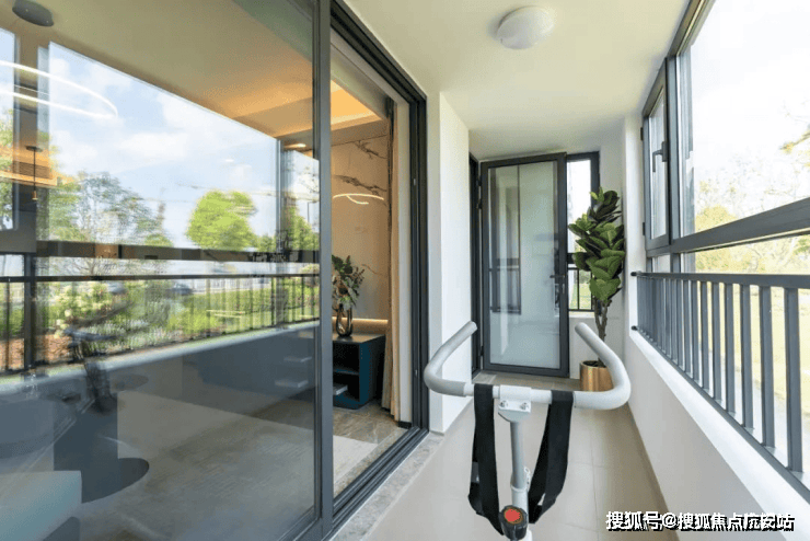 南向宽幕阳台,可以打造出多重场景,除了晾晒、洗衣之外,也可以健身、画画、品茶聊天。