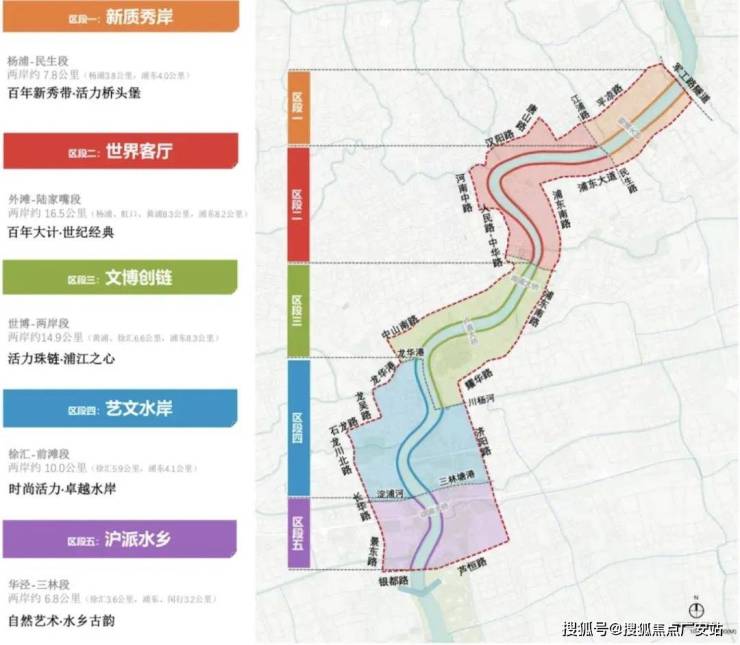 世界客厅段设计范围涉及黄浦江两岸共四个行政区,浦西段北至江浦路,南至会馆码头街、浦东段北至民生路,南至微山路。