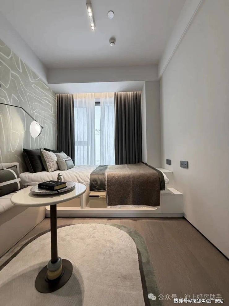 而南向次卧大门采用隐藏式设计,可以使电视墙一面更宽敞。
