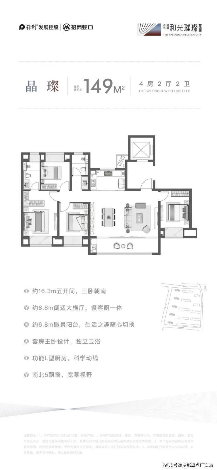 户型面积149-245㎡,得房率约80%,南北通透,厨卫全明
