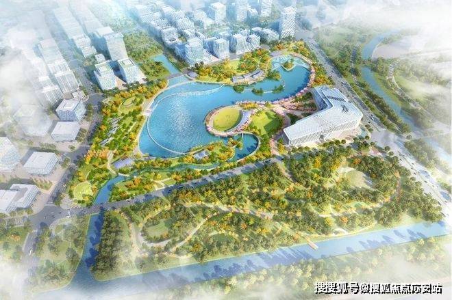 建筑风格造型,灵感源自东方的金镶玉设计,立面形似新石器时期的玉琮纹样,屋顶形似东方传统文化的飞鹤纹样,呈现灵动飘逸的东方之美。