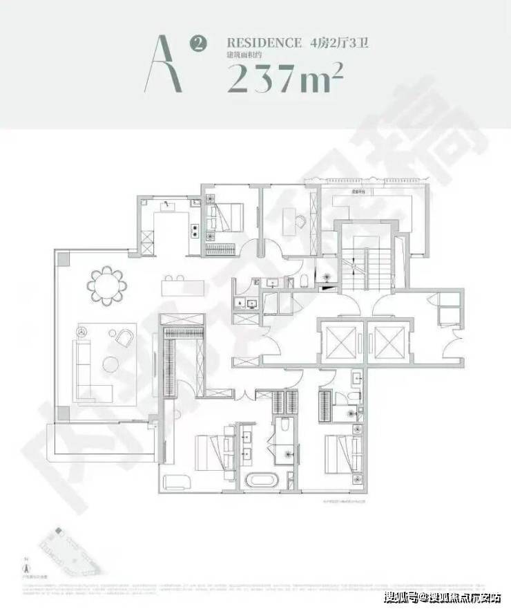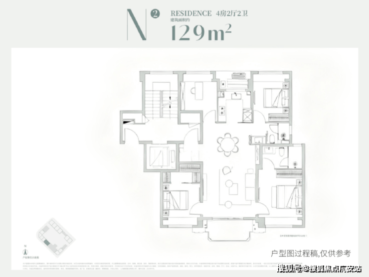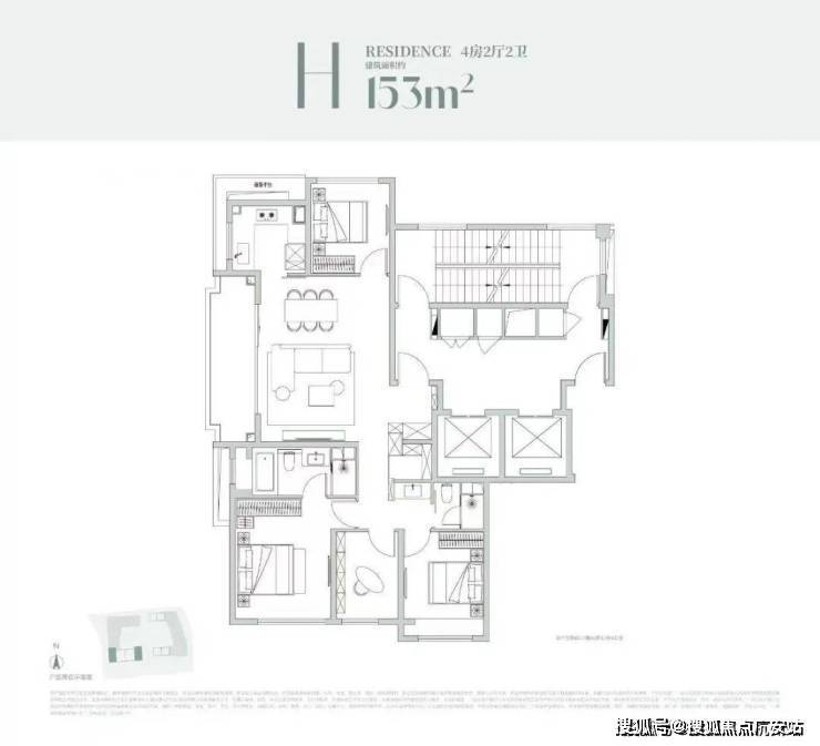 124-153㎡4 房:四叶草布局,主卧套房 + 浴缸,改善终极选择。