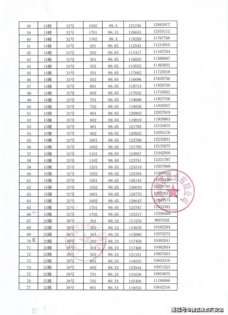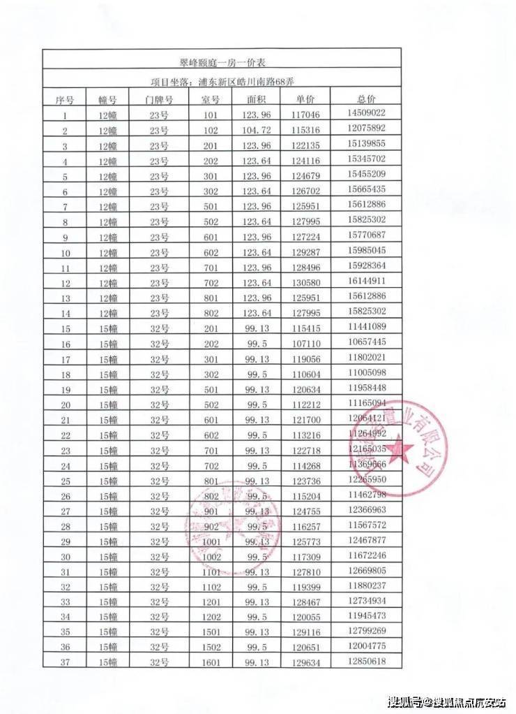 一房一价表如下: