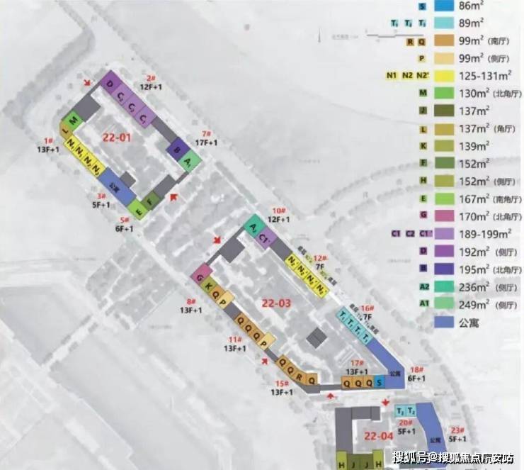 其中:22-01地块占地面积1.1万平方米,总建筑面积5万平方米,包括4栋住宅楼、2栋商业;22-03地块占地面积1.6万平方米,总建筑面积6.7万平方米,包括7栋住宅楼、2栋商业;22-04地块占地面积0.9万平方米,总建筑面积3.8万平方米,包括3栋住宅楼、2栋商业。