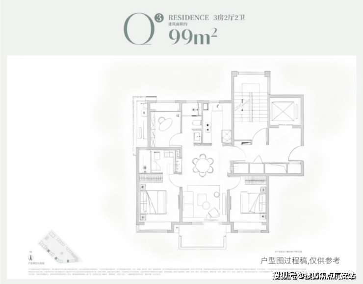 99-139㎡3 房:飞机户型 / 南北通透,3.05 米层高,高层看江。