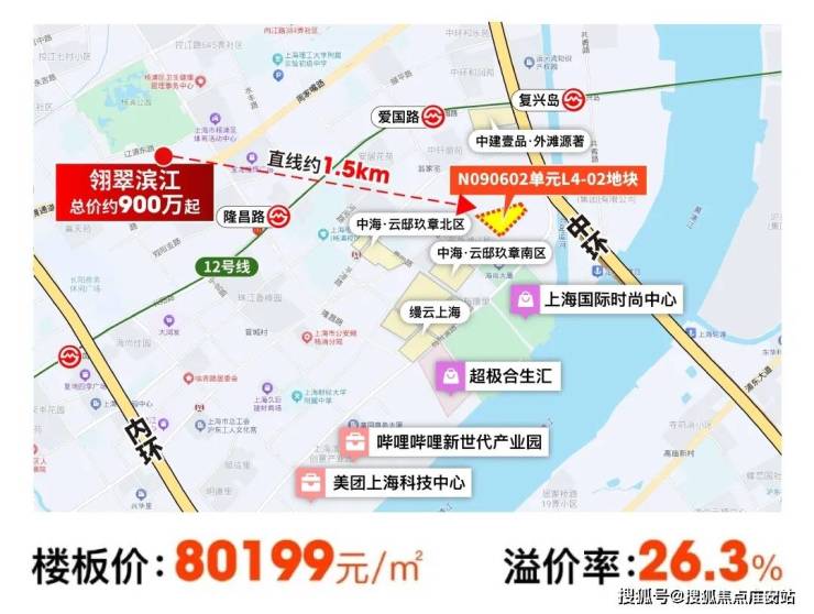 还有一个就是翎翠滨江目前所在的杨浦大创谷,总价约900万起: