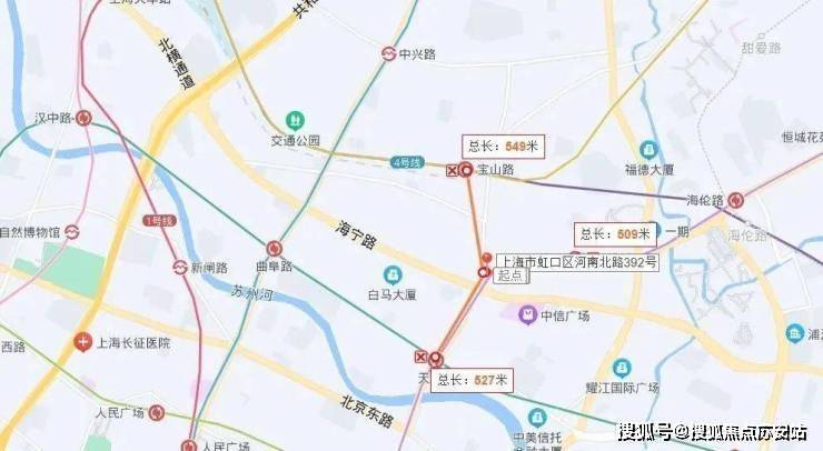 项目距离北外滩核心区,只隔了一条海宁路,距离外白渡桥、外滩源、苏州河都在直线约900米范围内。项目靠近轨交10号线四川北路站,周边还有3号线、4号线、12号线。