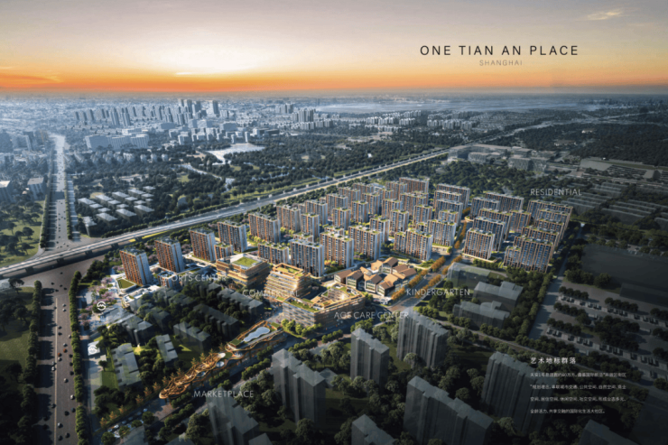【天安1号】总用地面积17.88万㎡,由住宅、体育中心、养老公寓、养老院、幼儿园、商业组成。