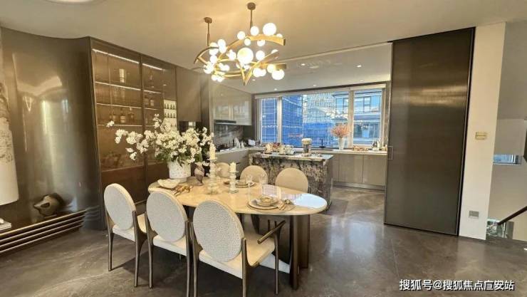 汲取宋式坡顶与挑檐,遵循现代高端镜面立面趋势,项目臻选高级铝板、石材勾勒建筑轮廓,搭配三玻两腔降噪隔音玻璃,勾勒光影交错、高大恢弘之姿.超高窗墙比让室内与自然无界沟通.美学、通风、景观、通透性尽显.