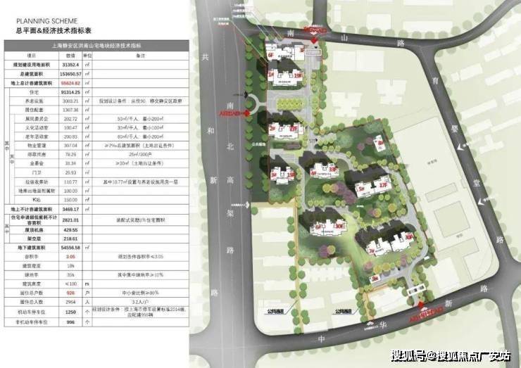 而北侧靠近南山路一侧还规划一幢最高6层的养老设施用房。在小区南北两侧的中华新路和南山路分别设有机动车出入口。