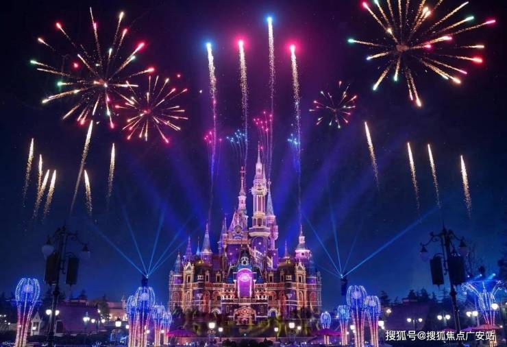 夜幕降临,奇幻童话城堡化身光影画布。烟花与激光交织成《冰雪奇缘》的冰晶、《狮子王》的草原,最后一幕“星愿”点亮夜空,万人仰望的瞬间,童话与现实在此交融。