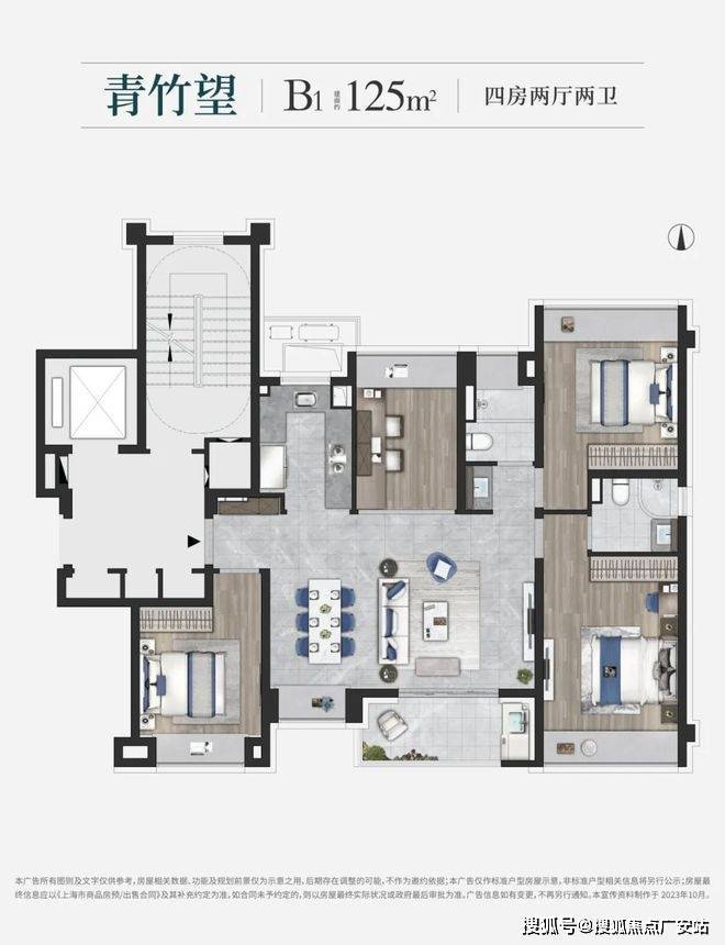 建面约125㎡的四房设计,在空间上使用功能更加扁平化,一站式解决了家庭生活的所有功能,优化居家动线,大大提升空间的居住体验。