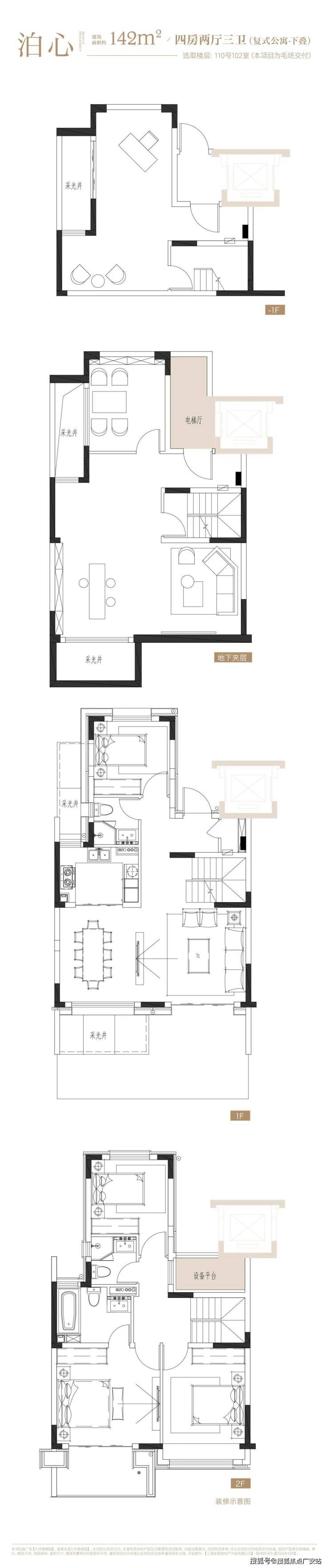推售建面约139-142㎡叠墅,总价约1100-1400万
